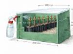Na vrhu korita napnemo folijo in potaknjenca postavimo v prostor, ki ima približno 20 stopinj. Lahko tudi na okensko polico. Če je spodaj radiator, ne bo škodoval, če le ni vroč. Lahko pa si pomagamo tudi z grelnim kablom za žlebove in jih položimo v korito na dno. Seveda pazimo, da temperatura v tem mini rastlinjaku ne preide več kot 20 do 22 stopinj Celzija. Ob natančnem delu se bomo v nekaj tednih veselili lepih zelenih mladih rastlinic z močnim koreninskim sistemom, ki jih kasneje presadimo v večje lonce ali na prosto, odvisno od rastline.